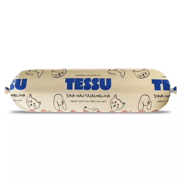 Koostumus: suomalainen sika (liha, rusto), suomalainen nauta (liha, keuhko, sydän, rusto).